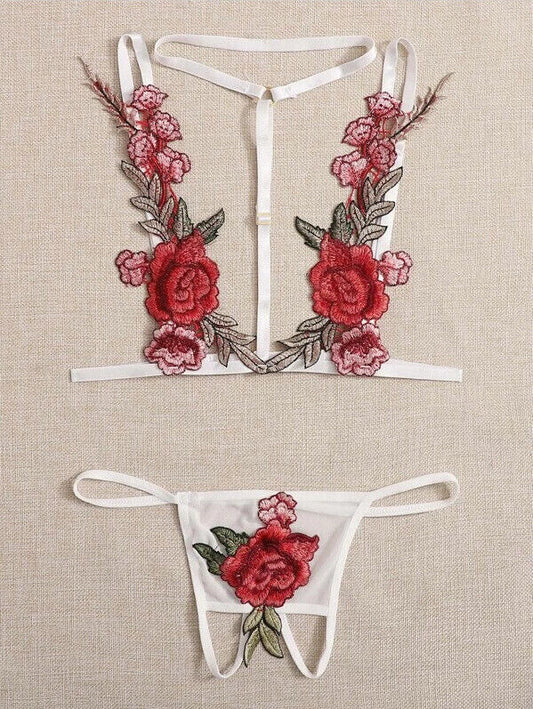 Transparent Adjustable Large Embroidered Flower Sexy Underwear Thong