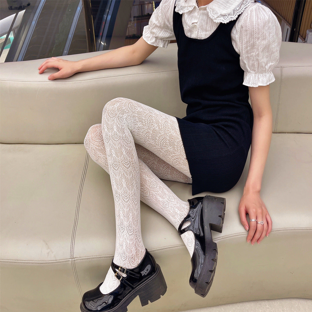 Sexy Jacquard Hollow Mesh Socks Loli Girl Bottom Pantyhose